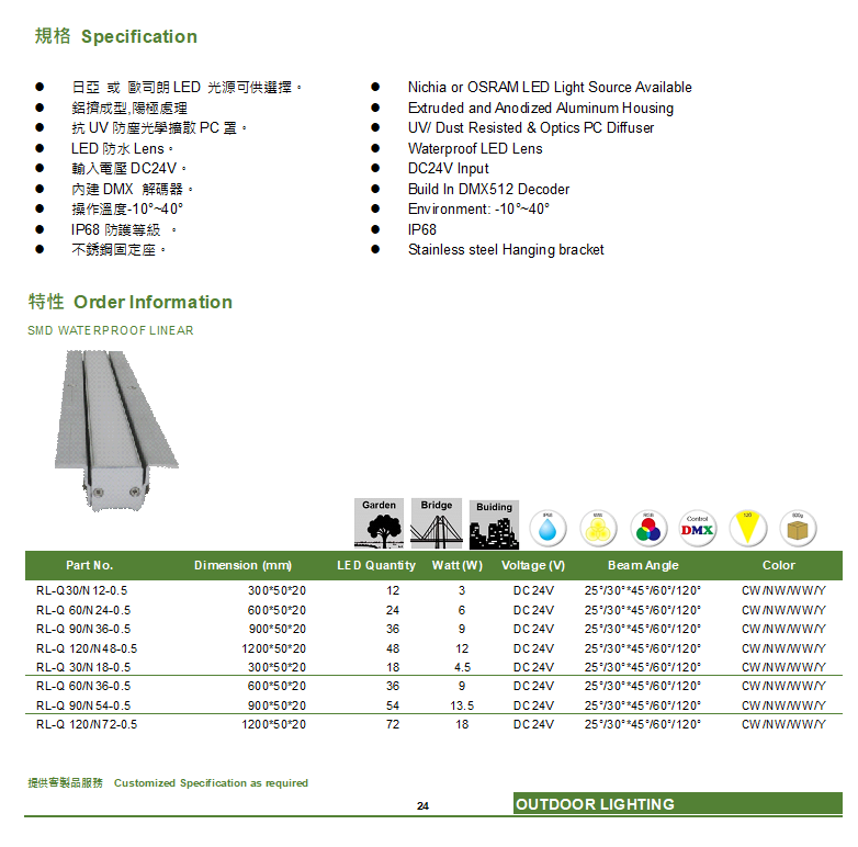 中功率洗牆線型燈